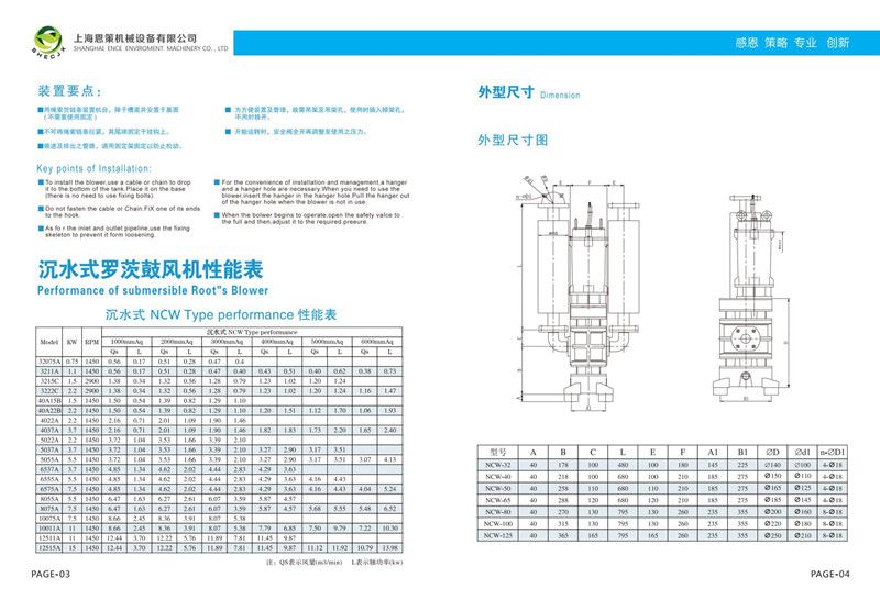 NCW恩策品牌沉水式鼓風機通過羅茨鼓風機改變而來,是專為污水處理所研發(fā)一款可沉入水底的羅茨鼓風機。