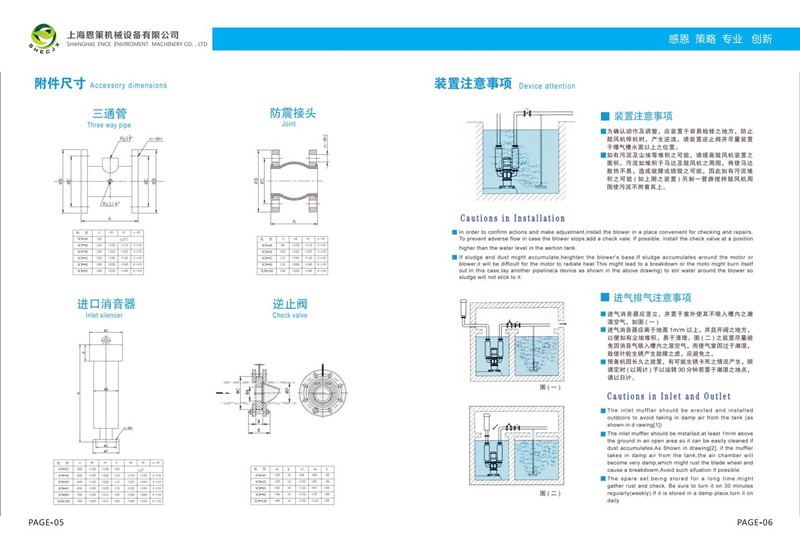 在安裝沉水式鼓風機之前首先對沉水式鼓風機的延長管進行氣密性測試,做好測試后進行以下步驟安裝: