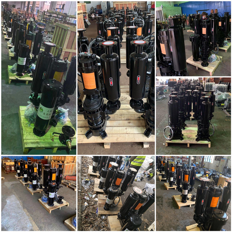 4、使用不銹鋼鏈條起吊潛水電機吊環(huán)處將機器送至風機安裝處。